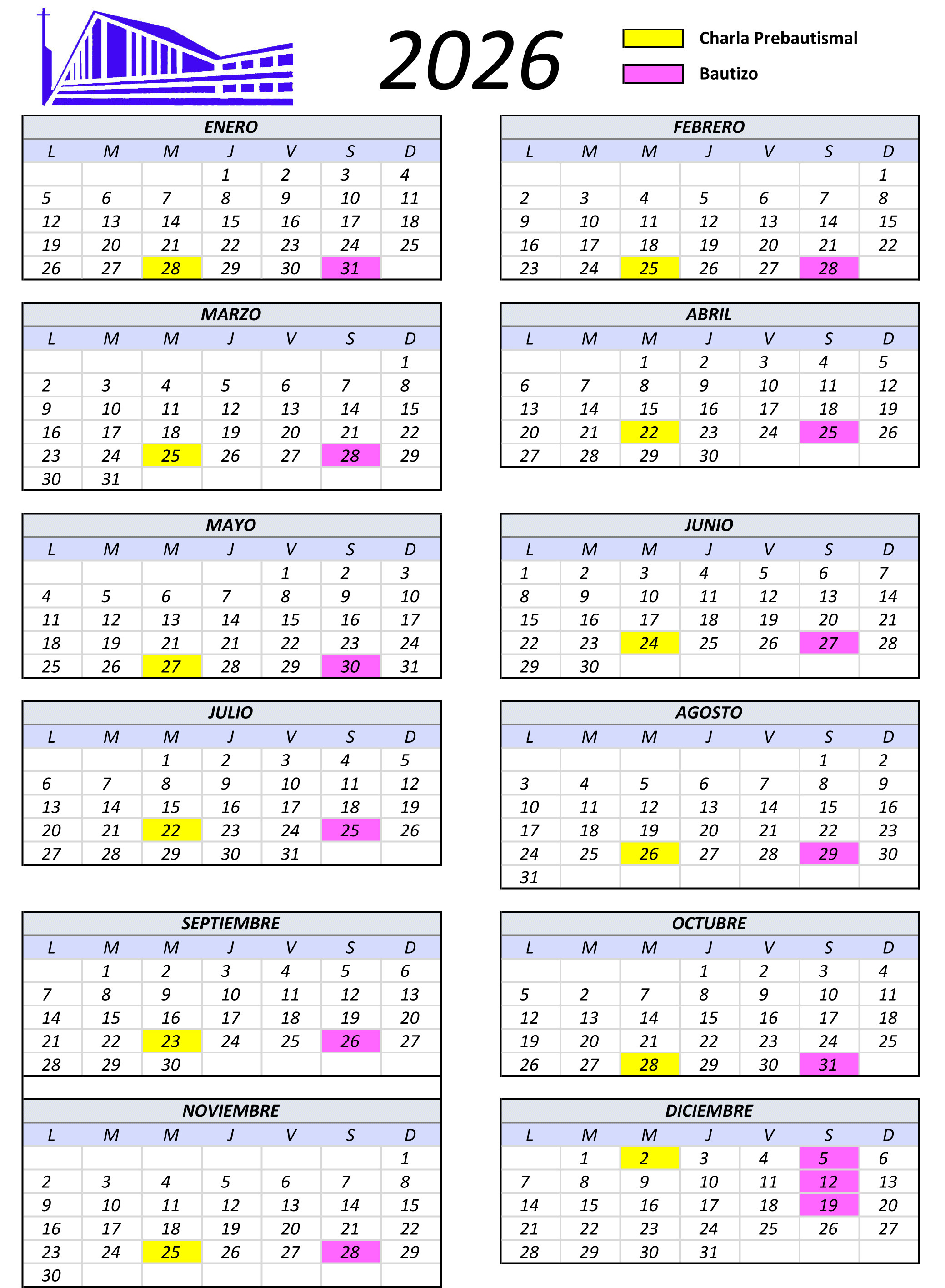Calendario Bautismal 2026